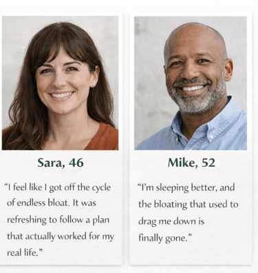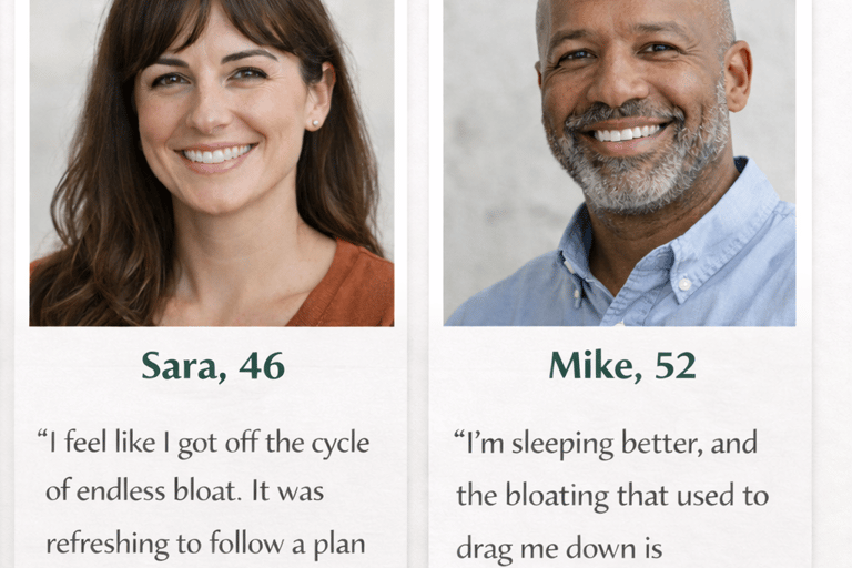 Your body-friendly reset comes with simple, practical steps and exclusive bonuses to help you finally reduce bloating, restore energy, and feel lighter. No pills, no gimmicks — just real support for your body